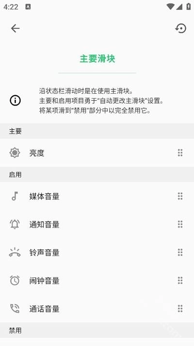 你可以打开滑动动作的滑块,通过在屏幕上左右滑动来调整亮度。另外,你也能调节音量哦!要是开启了“自动更换主滑块”功能,平时滑动调节的是亮度,而在播放音乐的时候,它就会自动切换成调节音量啦,是不是很炫酷?