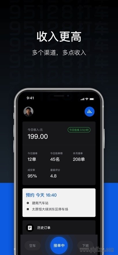 页面设计简洁明了,操作便捷易上手;覆盖多个渠道,助力增加收入来源;平台安全合规,支持全天派单,订单可自主选择。