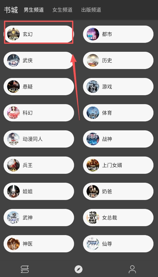 首先可以从书城着手挑选书籍,这里的分类十分齐全,像玄幻类别里包含武侠、悬疑、科幻等子分类,都市类别下则有历史、游戏、战神等内容,点击对应的分类就能进入查找想看的书籍了。