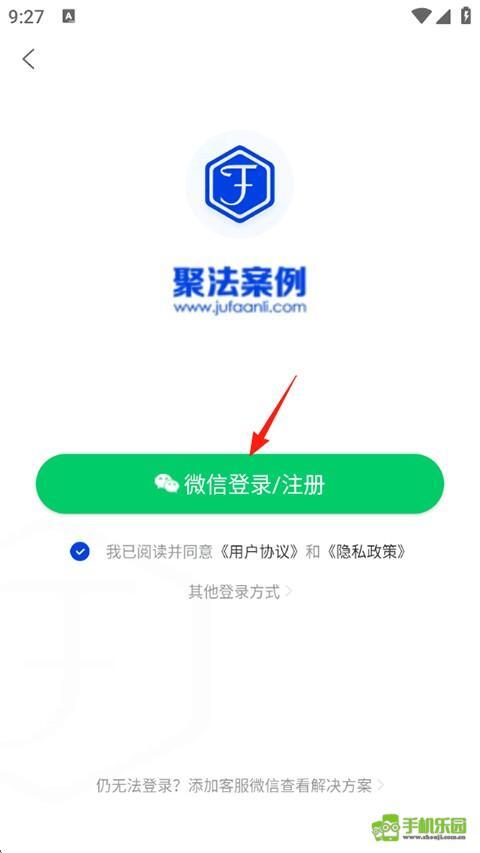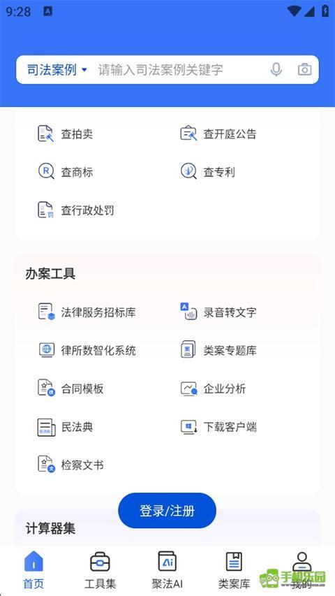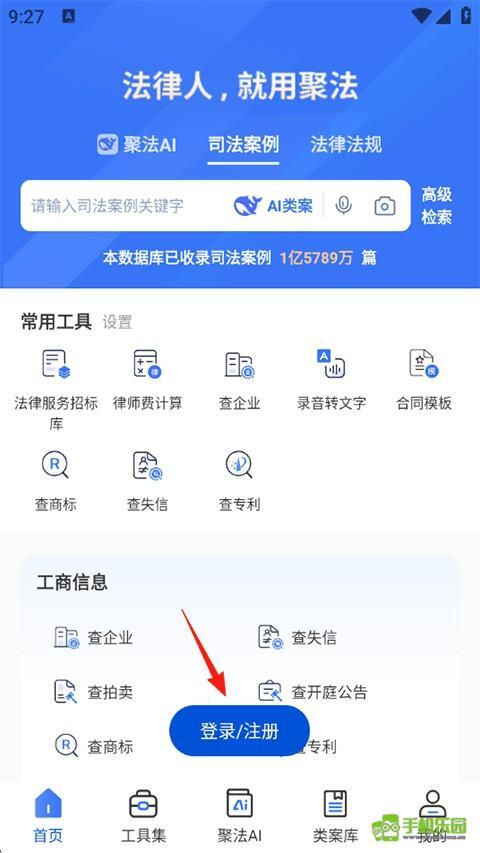 打开聚法案例,点击下方的登录/注册。