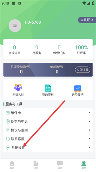 2、进入【我的】页面后,在【服务与工具】板块里找到【系统设置】这一选项,点击它就能进入对应的设置界面。
