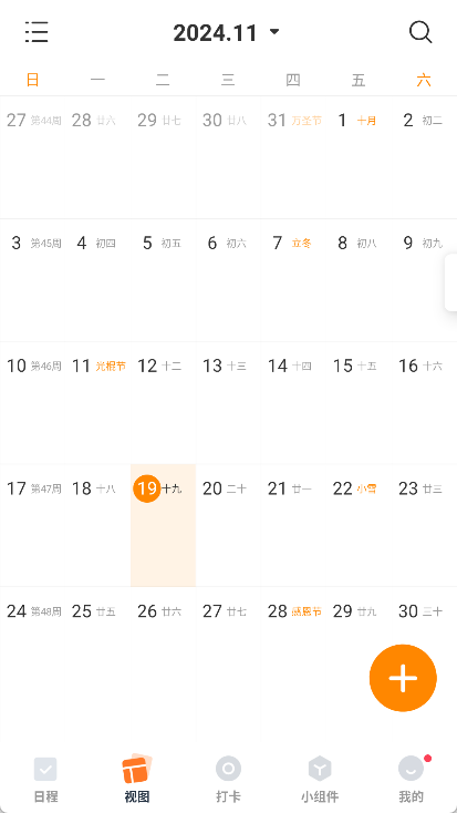 2. 视图规划:配备直观的周视图与月视图,可全面呈现近期日程安排,让您能一目了然地把握时间脉络,轻松管理各项事务。