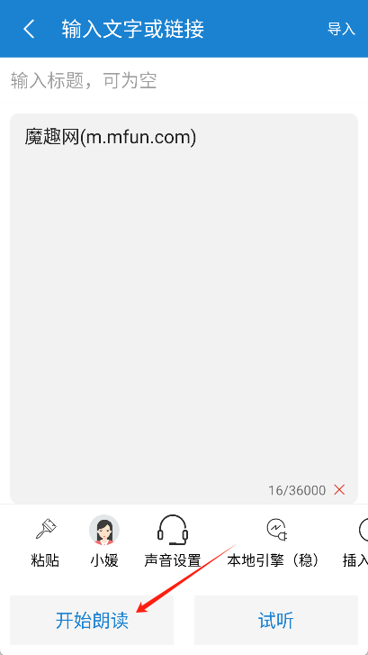 1、用户首先需要在魔趣网(m.mfun.com)下载并安装语音朗读助手到手机上。