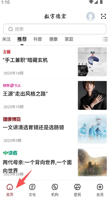 1、启动软件后,点击底部的“首页”按钮,即可浏览推荐、科普等不同类型的资讯内容。
