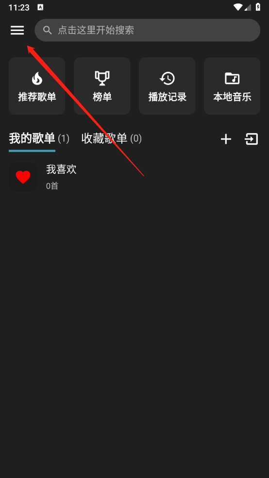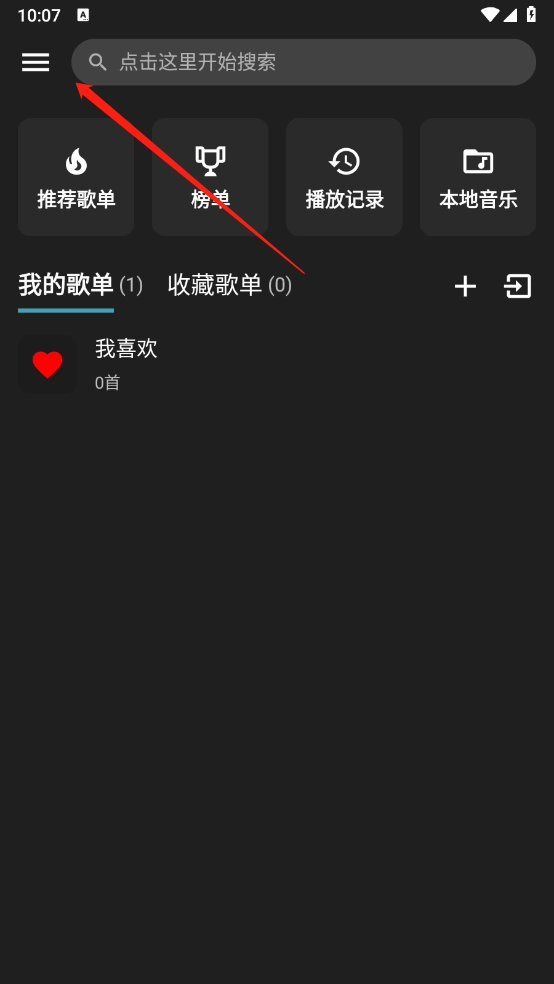 2、在首页中点击左上角的三横杠打开侧边栏。