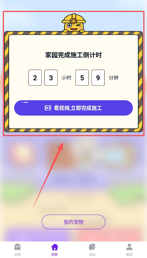 四、记得打理你的家园,施工过程中会有等待环节,不过观看视频就能跳过这段等待,家园越早建成,你的宠物收藏就能得到更好的展示。