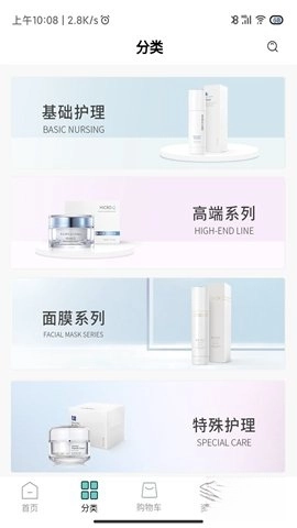 所有商品都已完成分类,用户能够借助分类挑选各类护肤产品。