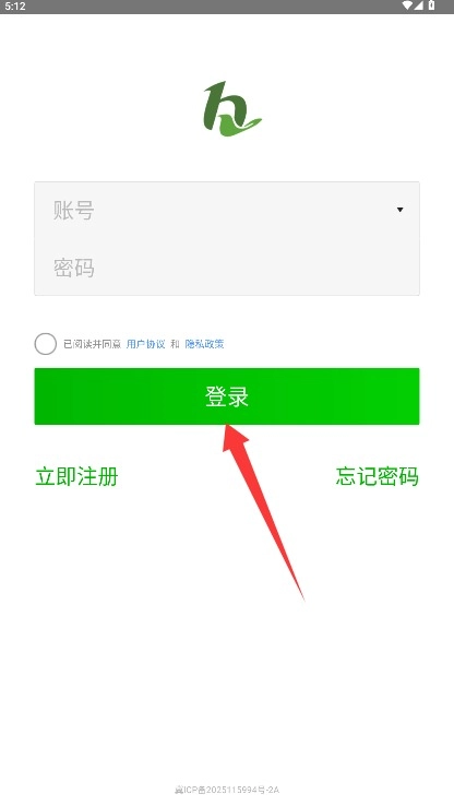 2、在登录页面输入账号和登录密码,勾选同意相关条款后点击登录进入应用。