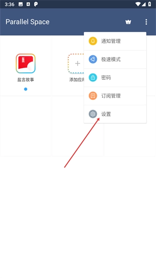 1、打开平行空间应用,点击右上角三点菜单按钮。