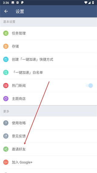3、在设置页面的更多分类下,选择邀请好友选项。