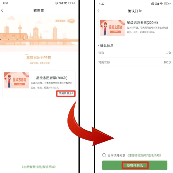 在黑龙江志愿服务平台(只限于哈市注册志愿者)注册并认定为一星、二星、三星级的我市志愿者,每年免费乘坐哈尔滨市主城九区公交、地铁、轮渡、智轨共计200 次;