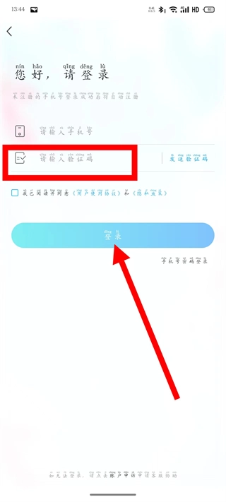 4、输入验证码,勾选相关服务协议后,点击登录,完成登录。