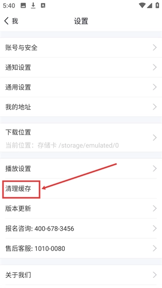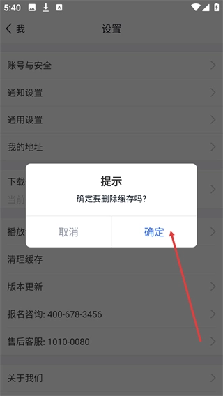 3、在【设置】页面,选择【清理缓存】选项并点击,即可触发缓存删除的确认提示弹窗。