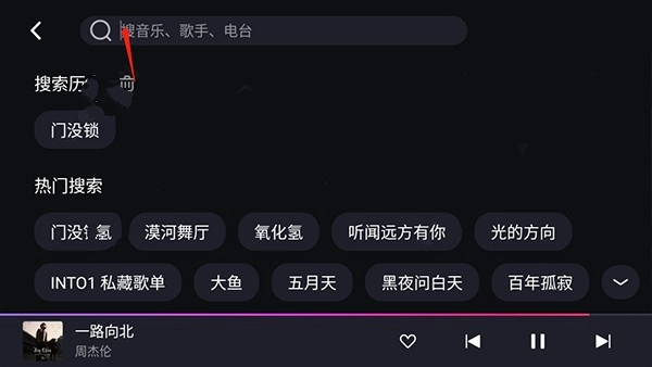 随后就会跳转到搜索界面,在输入框里输入想要搜索的歌曲。