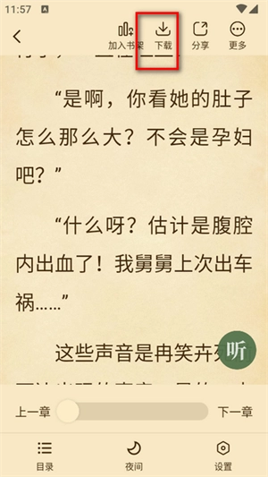 3、选择一本要听的书打开,然后点击右下角的听