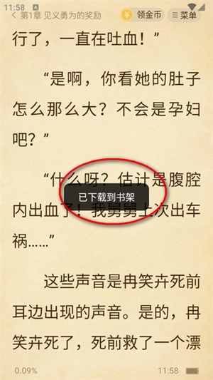1、打开进入要小说的阅读页面,点击屏幕中间呼出菜单,然后再点击右上角的按钮