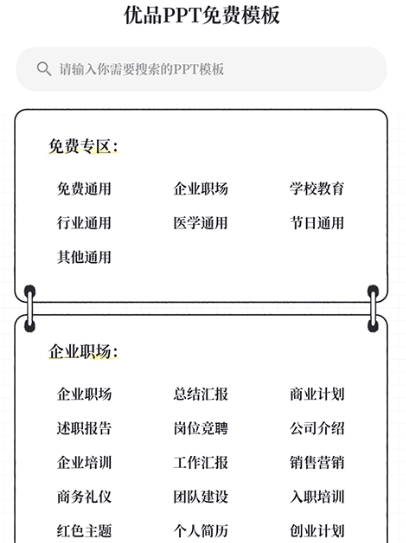在优品PPT App的首页里,按照自身需求找到对应的分类。