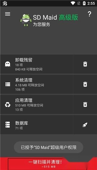 打开SD Maid清理器最新版,扫描;