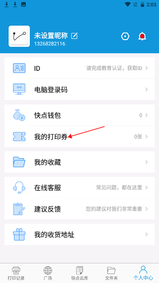 1. 第一步,打开快点云打印,登录完毕后进入【个人中心】。