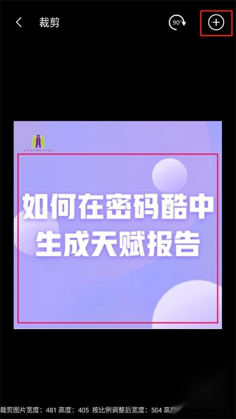 2、接下来进入裁剪编辑图片的页面后,点击右上角的“+”按钮,就能成功将该图片设置为氢壁纸了。