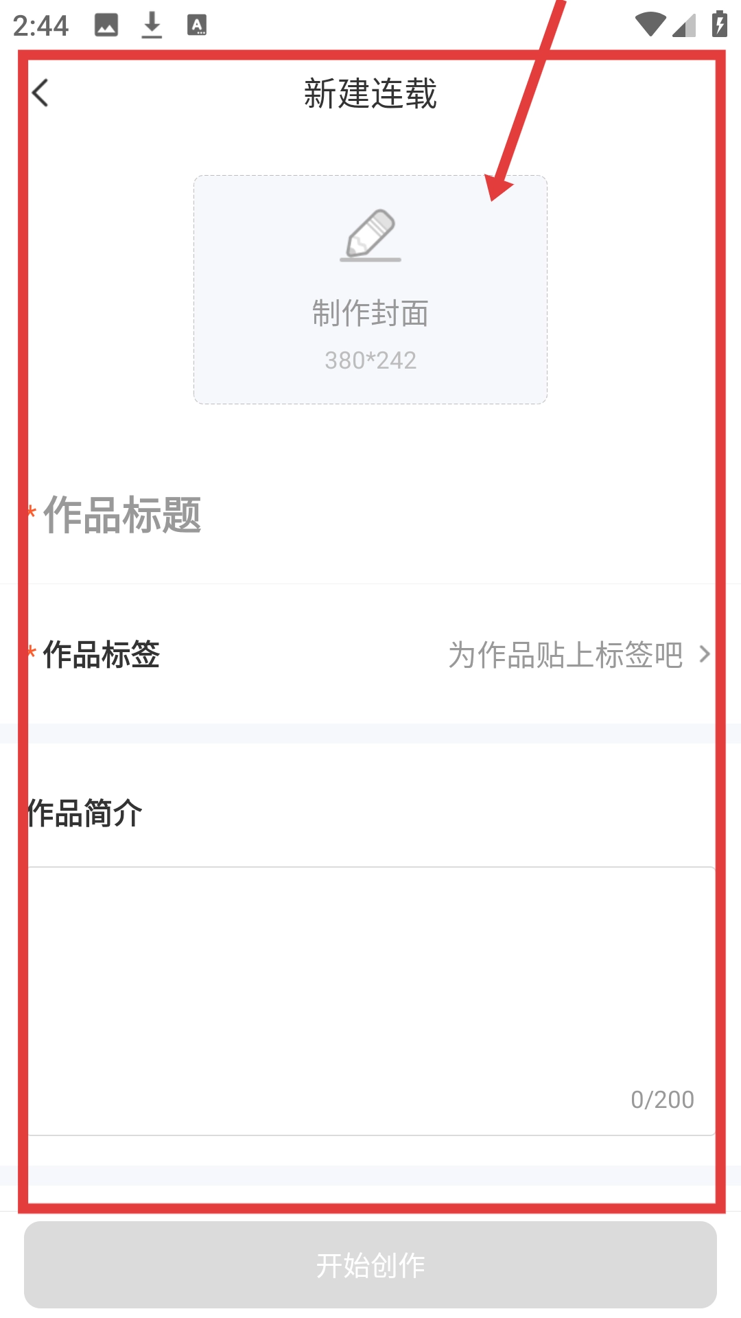 在新建连载的界面里填好作品信息,再把封面制作完成,就能着手开展漫画创作了。