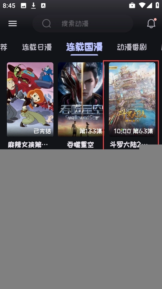 2、在应用首页,可以看到超多连载日漫,连载国漫,动漫番剧等等。