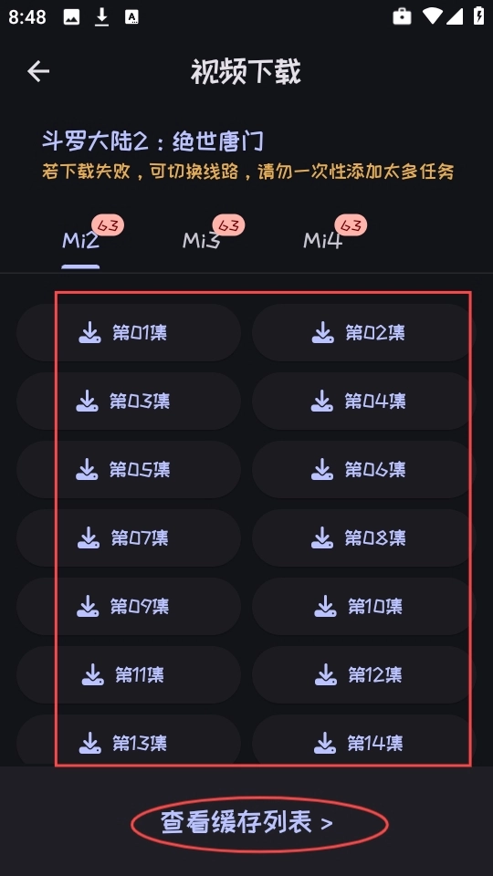 5、支持离线视频功能,可以随时查看缓存列表。