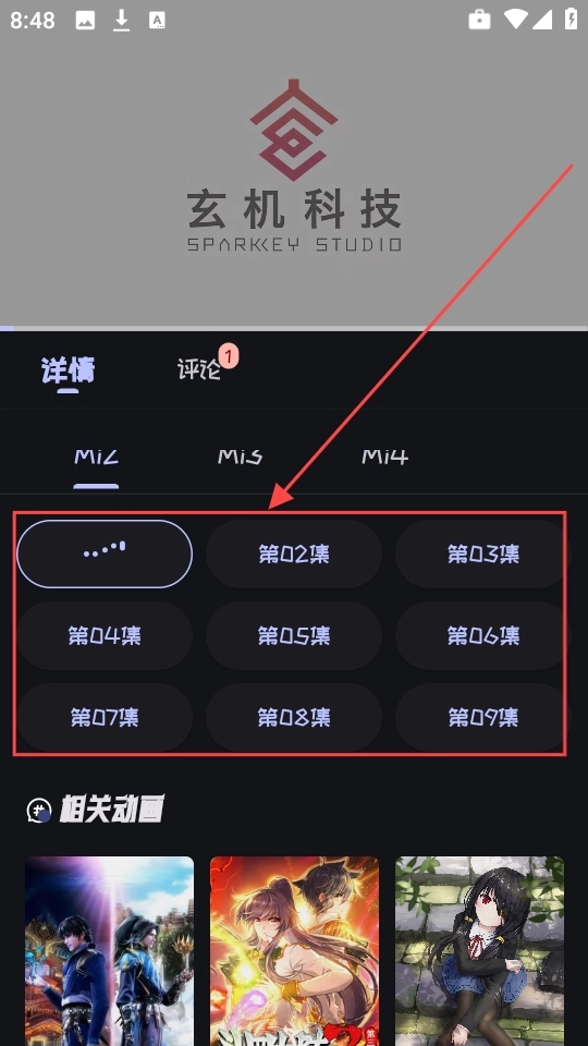 4、在播放界面,可以直接查看这部动漫的全部选集内容。