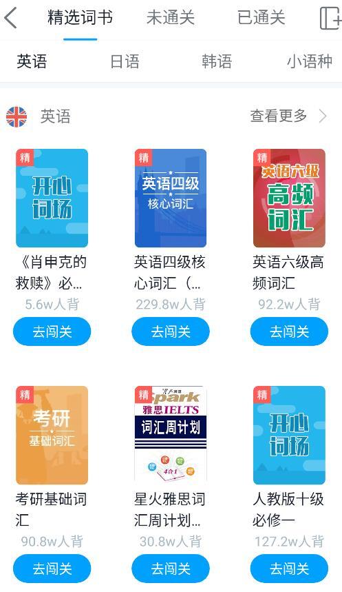沪江开心词场支持英语、日语、法语、德语等多种语种学习。在这里,你能轻松制定学习计划,每天只需花几分钟就能完成学习进度。每天前进一小步,便是迈向成功的一大步。别总抱怨学不会、没时间,只要坚持,必定会有成效。词场还包含众多文学、影视作品内容,让你记单词时不再枯燥。快来试试吧!