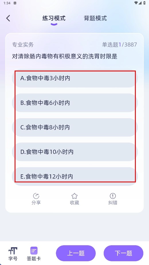 进入练习页面后,可进行题目练习,选择答案选项。