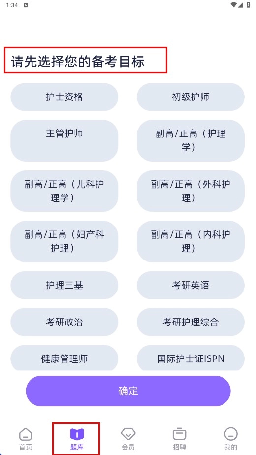 在题库页面,挑选备考方向,比如护士资格、初级护师之类的。