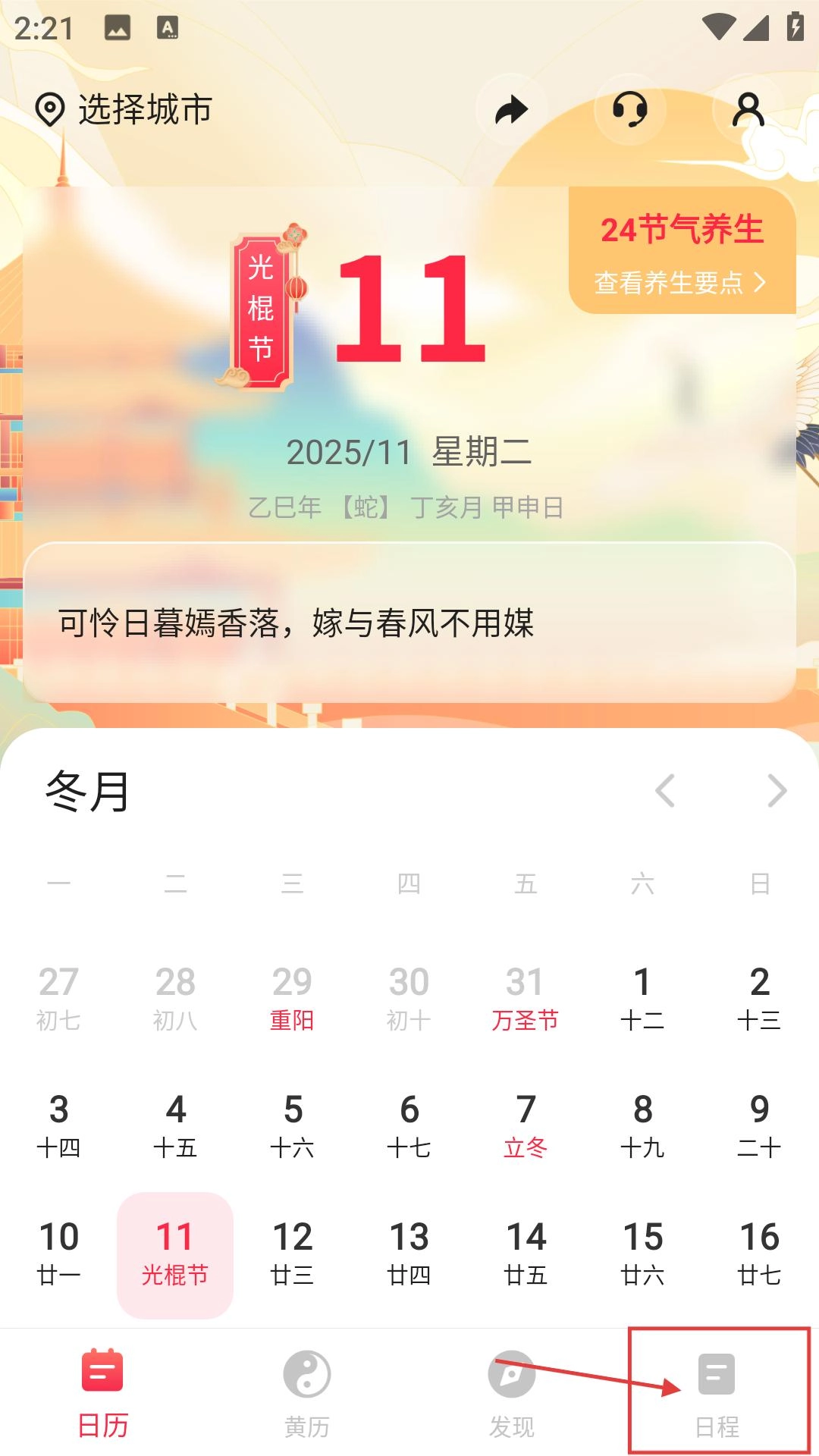 进入主界面后,点击右下角的【日程】选项,就能进入日程管理界面,这样就可以添加个人的日程安排了。