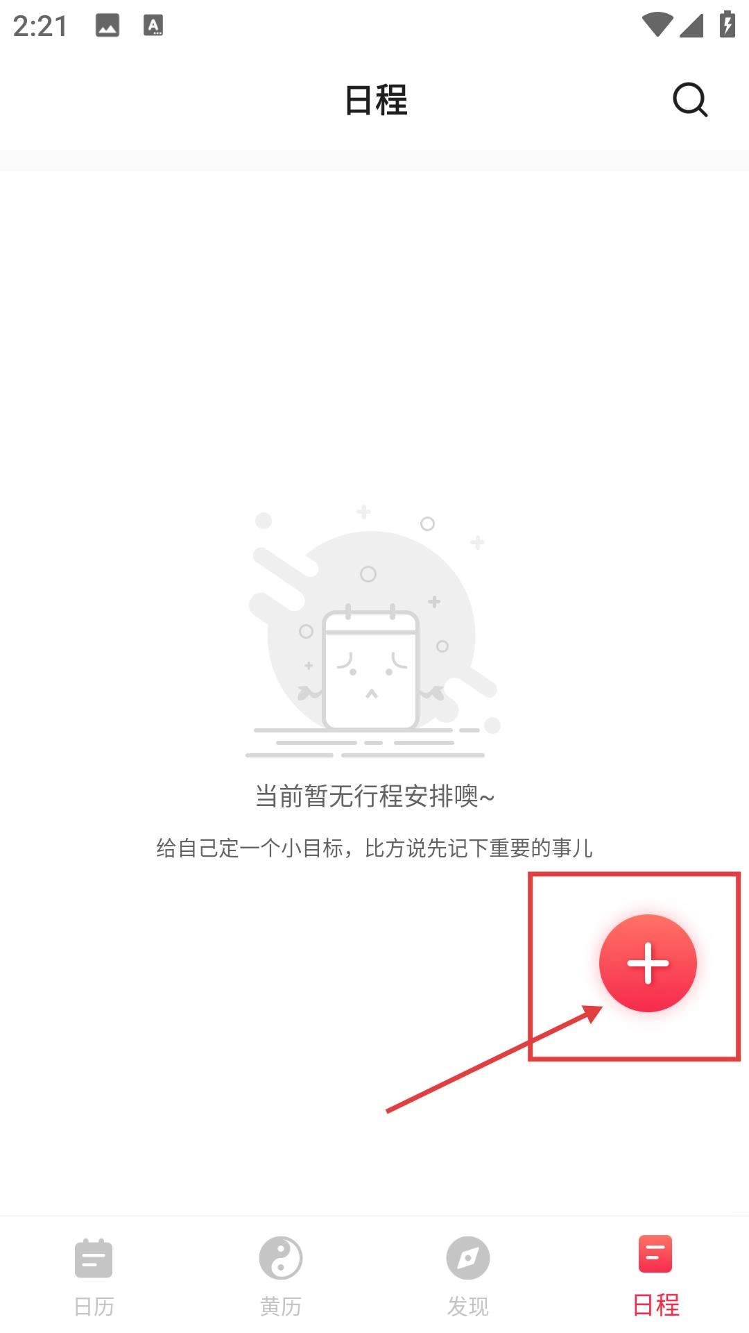 在日程界面中,点击右下角红色的【+】按钮,就能进入新建日程界面,着手创建新的日程。