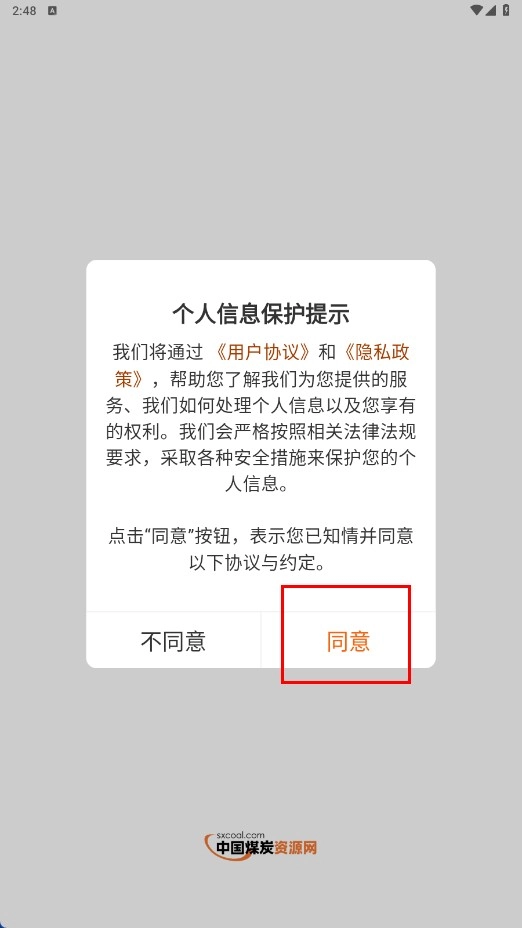 请您先阅读个人信息保护提示,之后点击【同意】按钮,就能进入应用的主界面了。