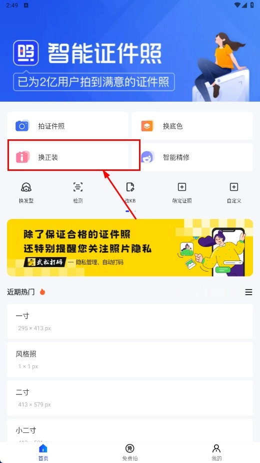 多种尺寸可选:涵盖一寸、二寸、护照、驾照等常用证件照规格,能适配用户在不同场景下的使用需求。