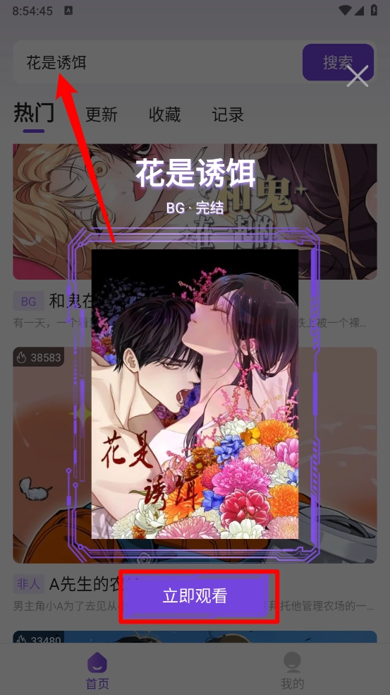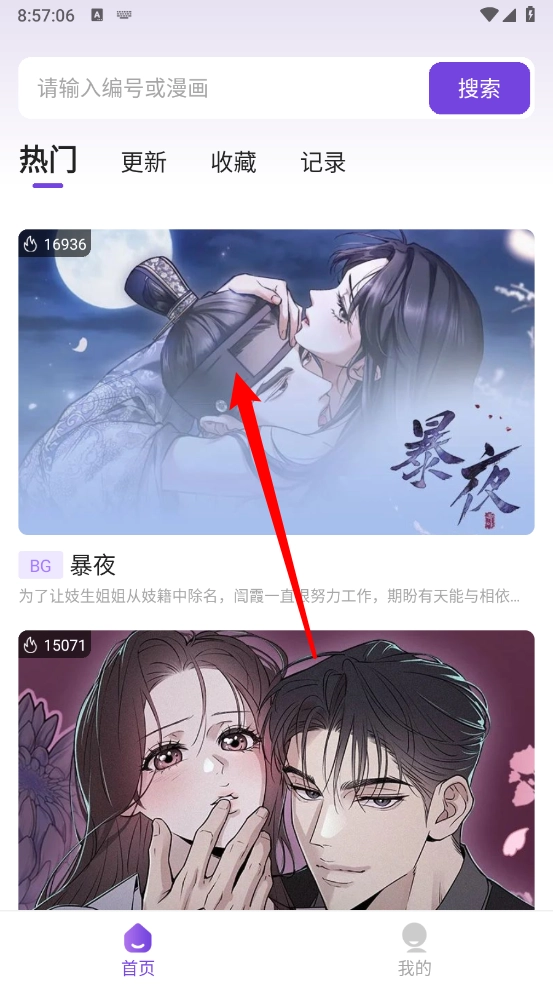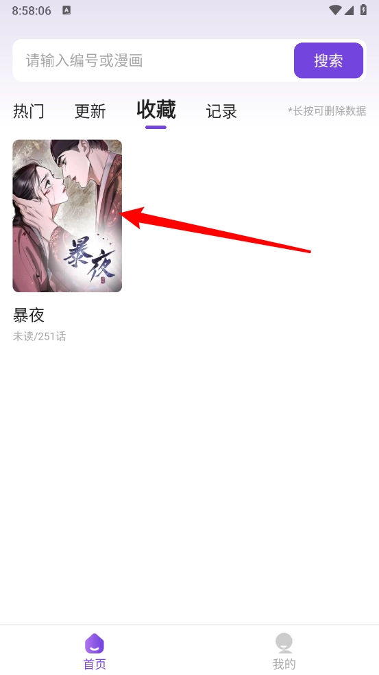 回到主页后切换到收藏板块,就能查看自己收藏的漫画资源了。