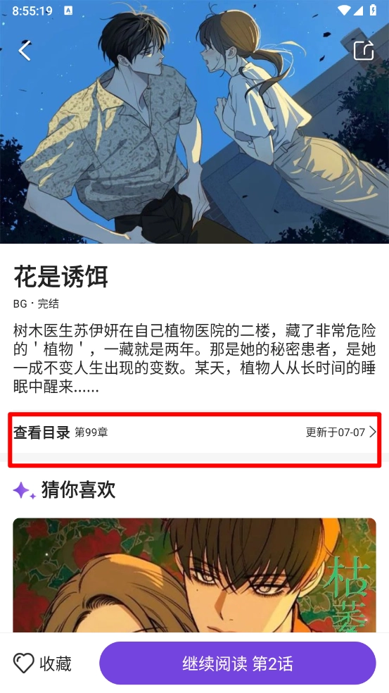 一键打开进入漫画详情页,点击"收藏"按钮。