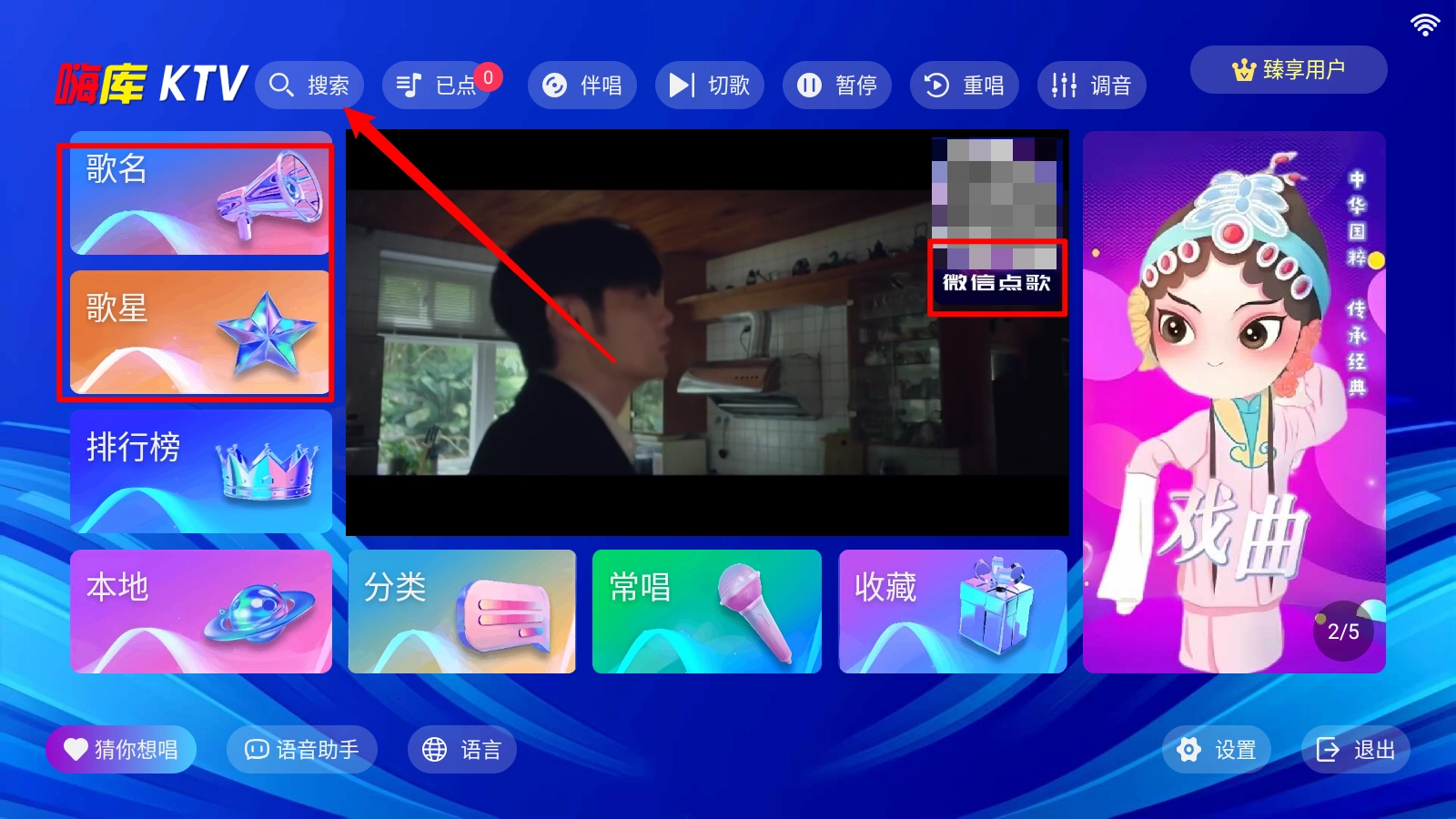 在主页选点歌的方式,如图。