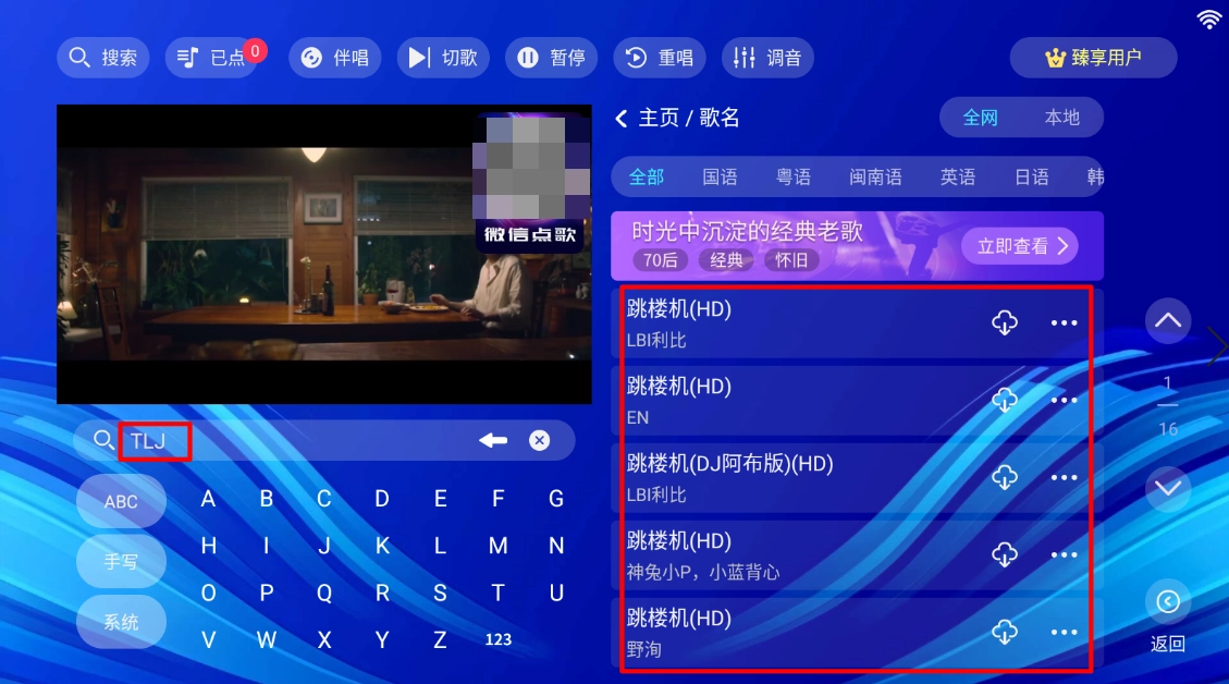 以"歌名点歌"为例,输入首字母就可以进行点歌。