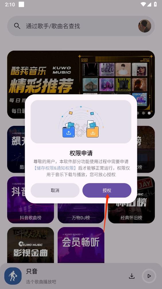 您可以先在本站完成软件安装,之后一键点击进入软件,再点击“授权”按钮以允许相关权限访问。