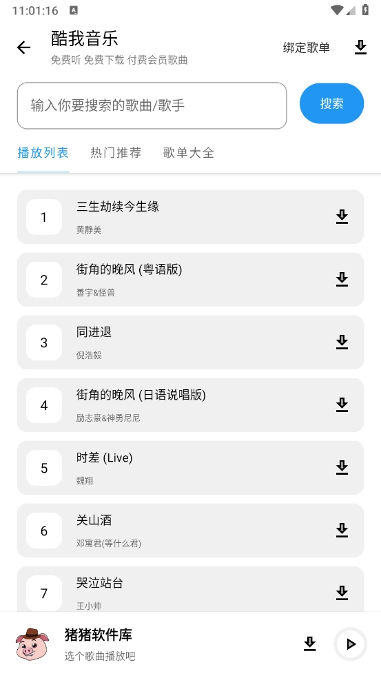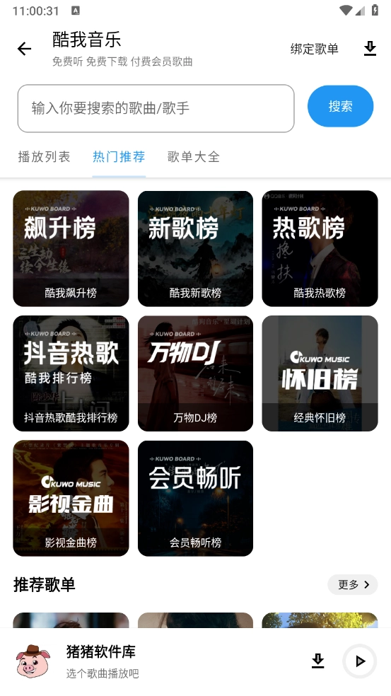 任意点击进入后,就能滑动选择心仪的音乐榜单开展搜索。