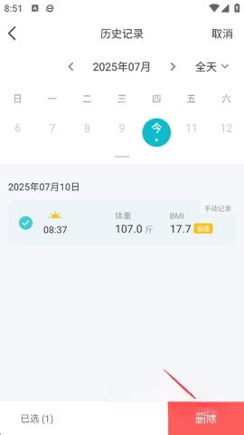 选择需要删除的记录,最后点击右下角的删除。