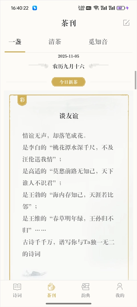 每日更新诗词专题、文化随笔、名家赏析及茶文化文章,助用户在品读古诗时领略东方意境之美。