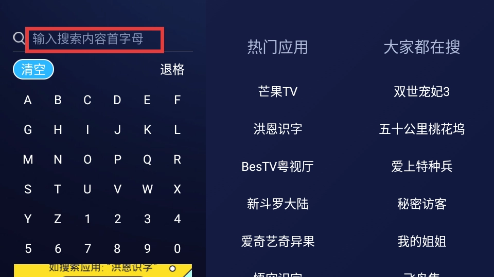 在标注为【输入搜索内容首字母】的搜索框里,输入你想查找的应用的首字母就能进行搜索。