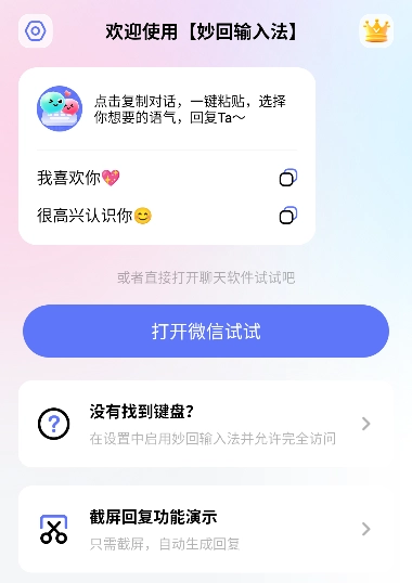 妙回输入法是一款能够帮助我们在线进行高情商回复聊天的工具。在这里我们可以轻松地输入文字,并进行精美的润色,一键发送。此外,软件还会根据不同场景为我们提供智能化建议,确保沟通无忧,让我们轻松享受交流的乐趣,实现甜蜜升级。