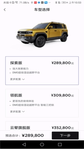新车中可以查看不同车型版本详细信息。