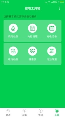 4、省电工具具备以下功能:耗电情况检测、内存清理优化、充电过程记录、电池状态检测、电池健康度评估以及电池降温处理。