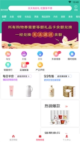 折扣宝的特权页面陈列着多样的专属福利,用户能便捷领取各类特惠权益。软件配备详细的操作指南,助力用户迅速熟悉使用方法。在购物商城里,用户可浏览海量商品,挑选心仪商品后,点击领券下单就能享受折扣。登录个人中心后,用户可开展更多功能操作,个性化服务体验也更为顺畅。