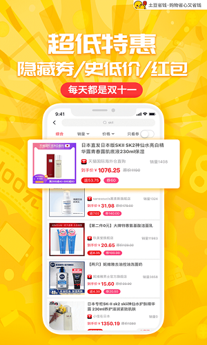 土豆省钱是一款购物可以帮助你来省钱的软件,在这里,许多平台特惠低价的物品可以尽情抢购,让您不断的享受着优惠,还有众多隐藏的购物券与代金券,让价格一直打折扣,用户在购物后,佣金全部返回,还有许多线下的商家优惠券,可以让你一直领个不停,让您不论是线上还是线下都能够一直享受优惠,快来下载体验优惠吧。